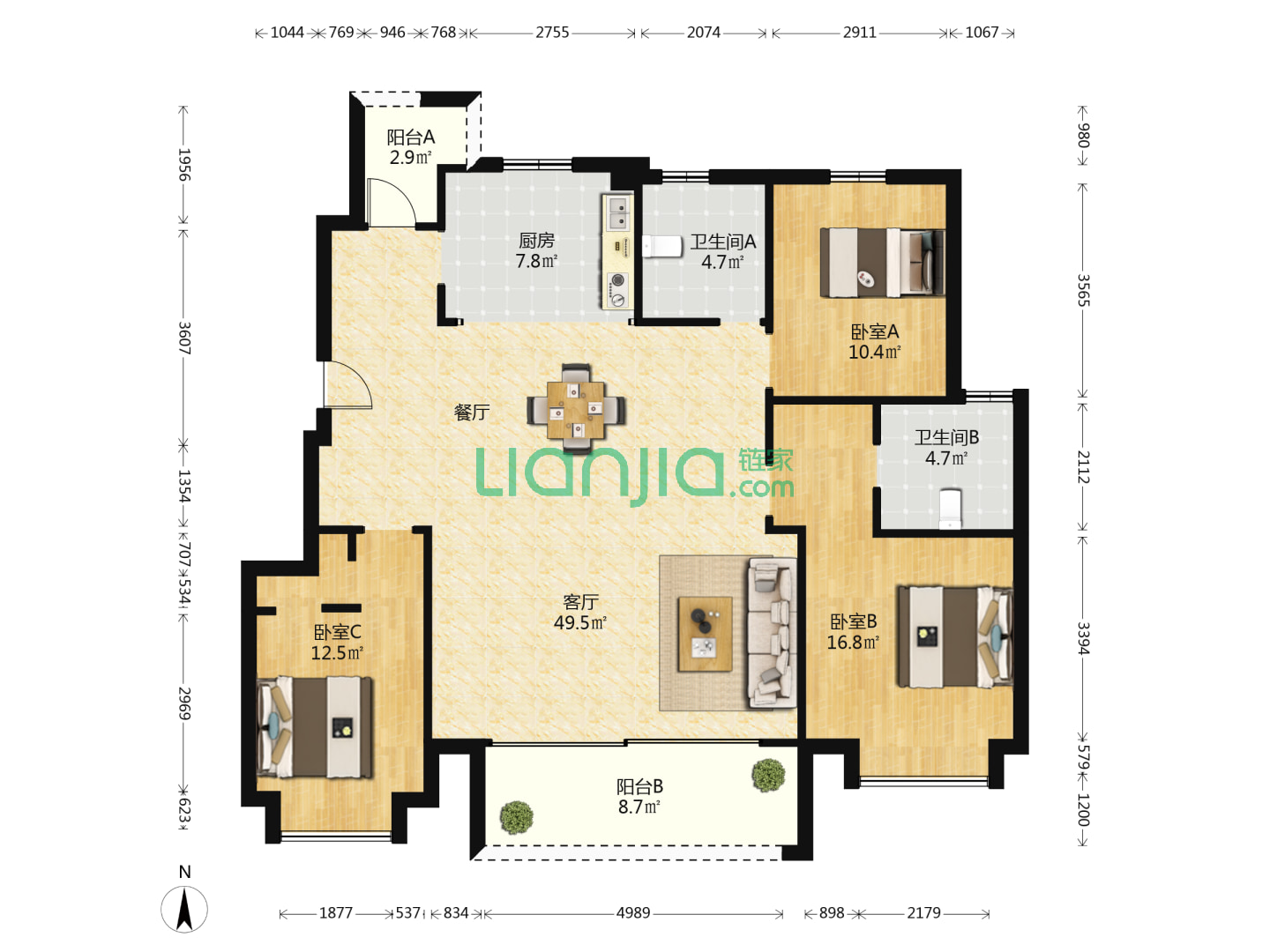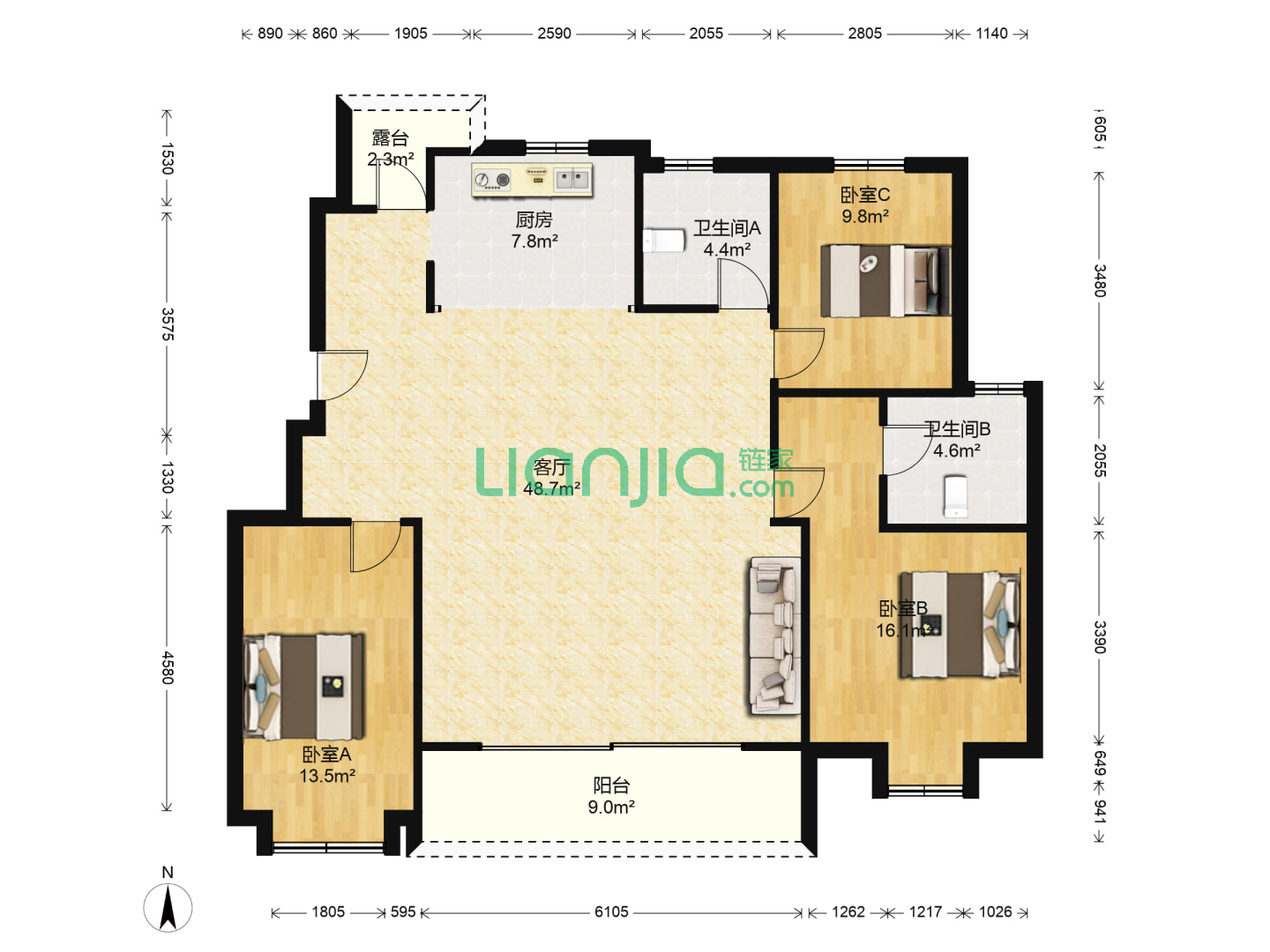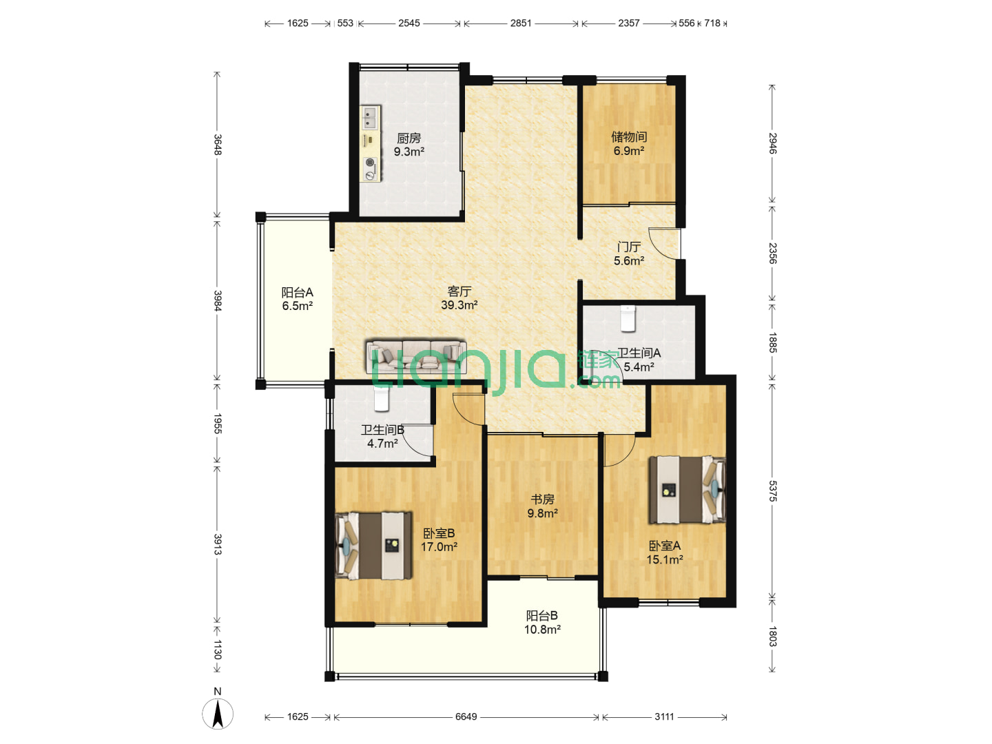 3室2厅2卫 95㎡