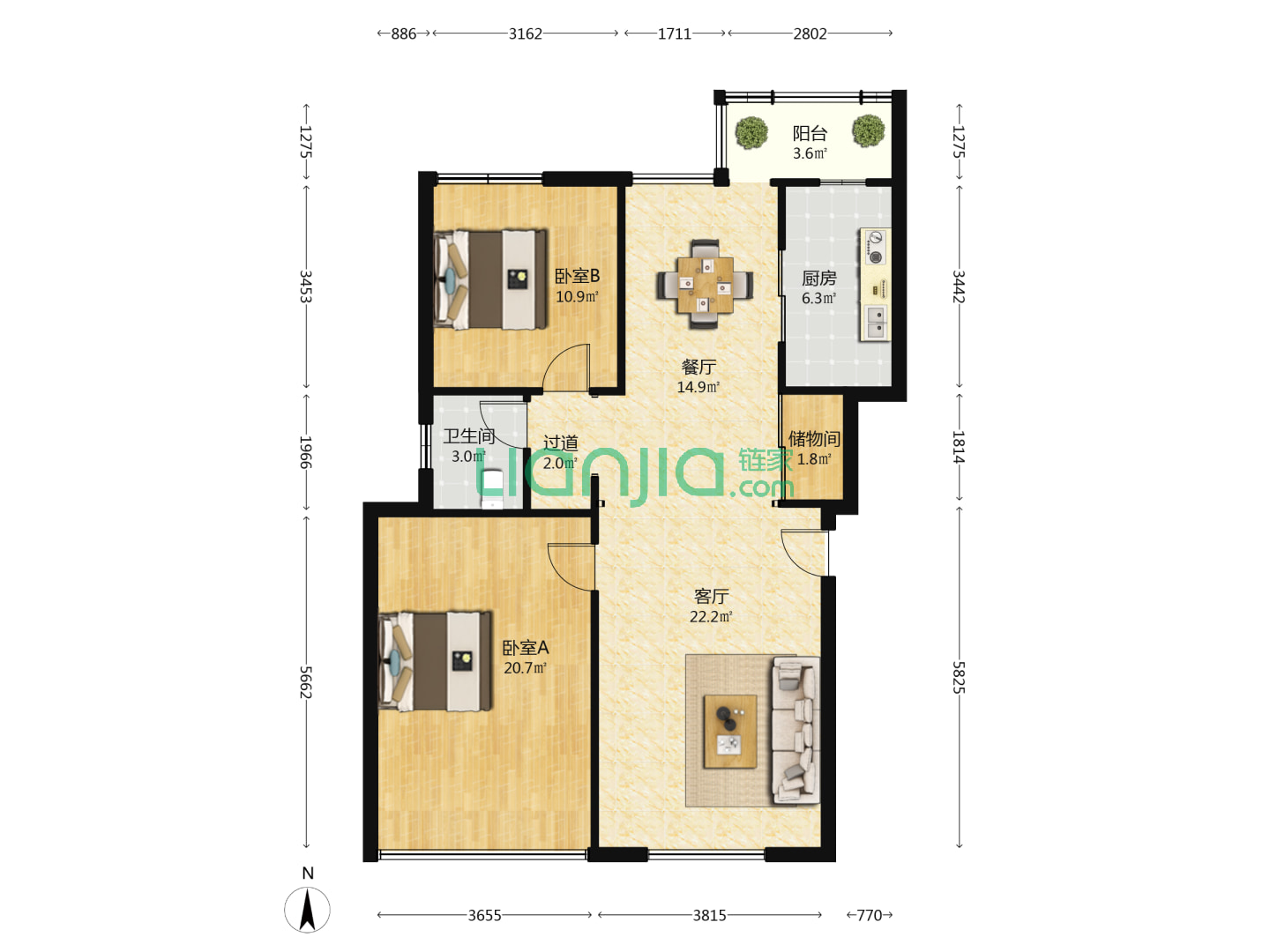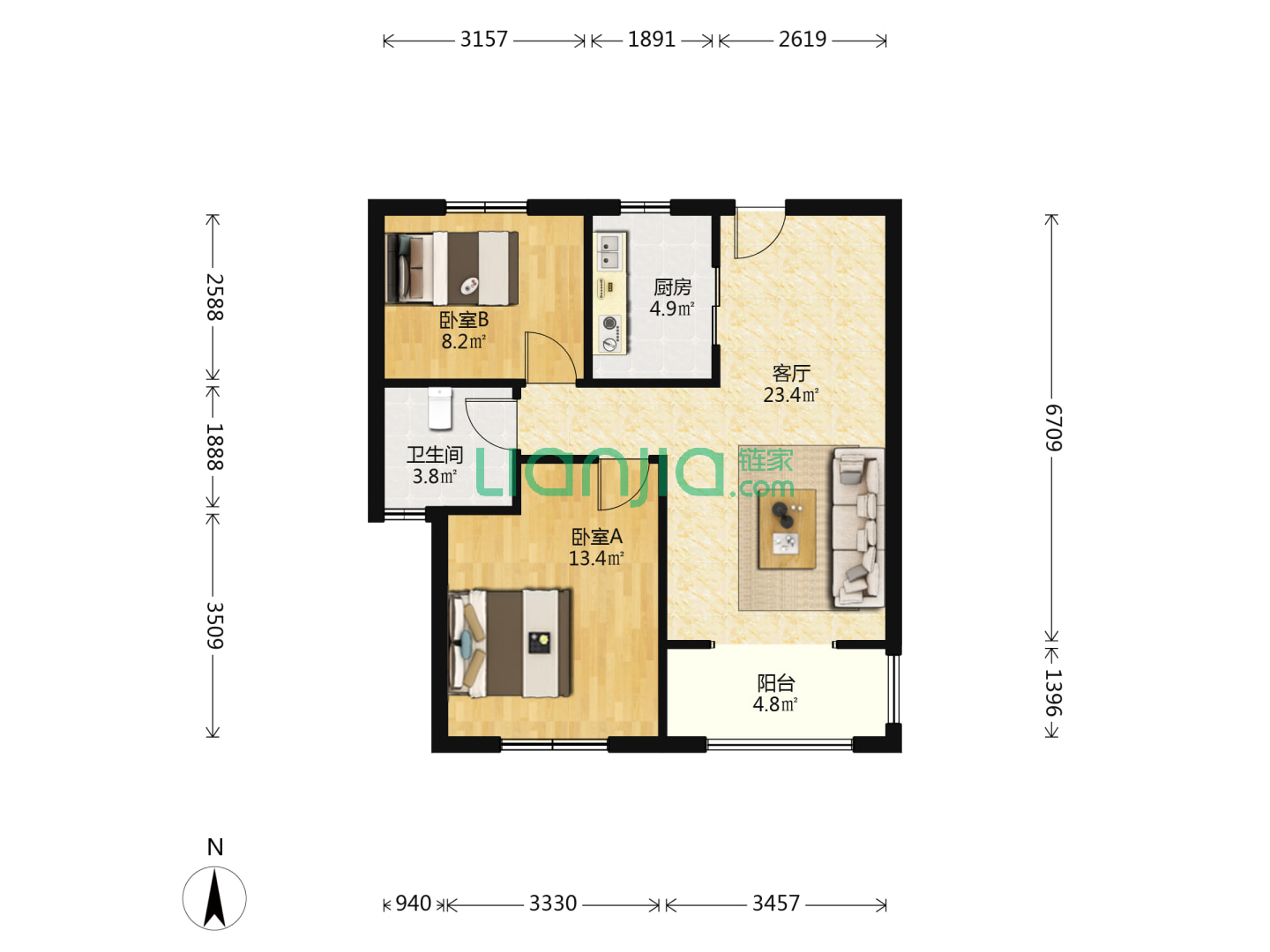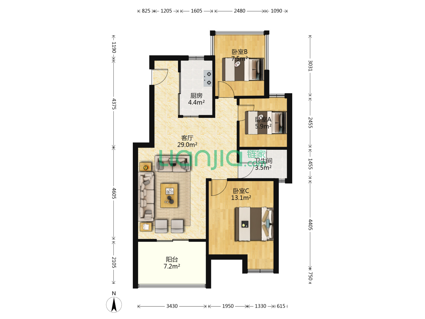 3室2厅2卫 95㎡