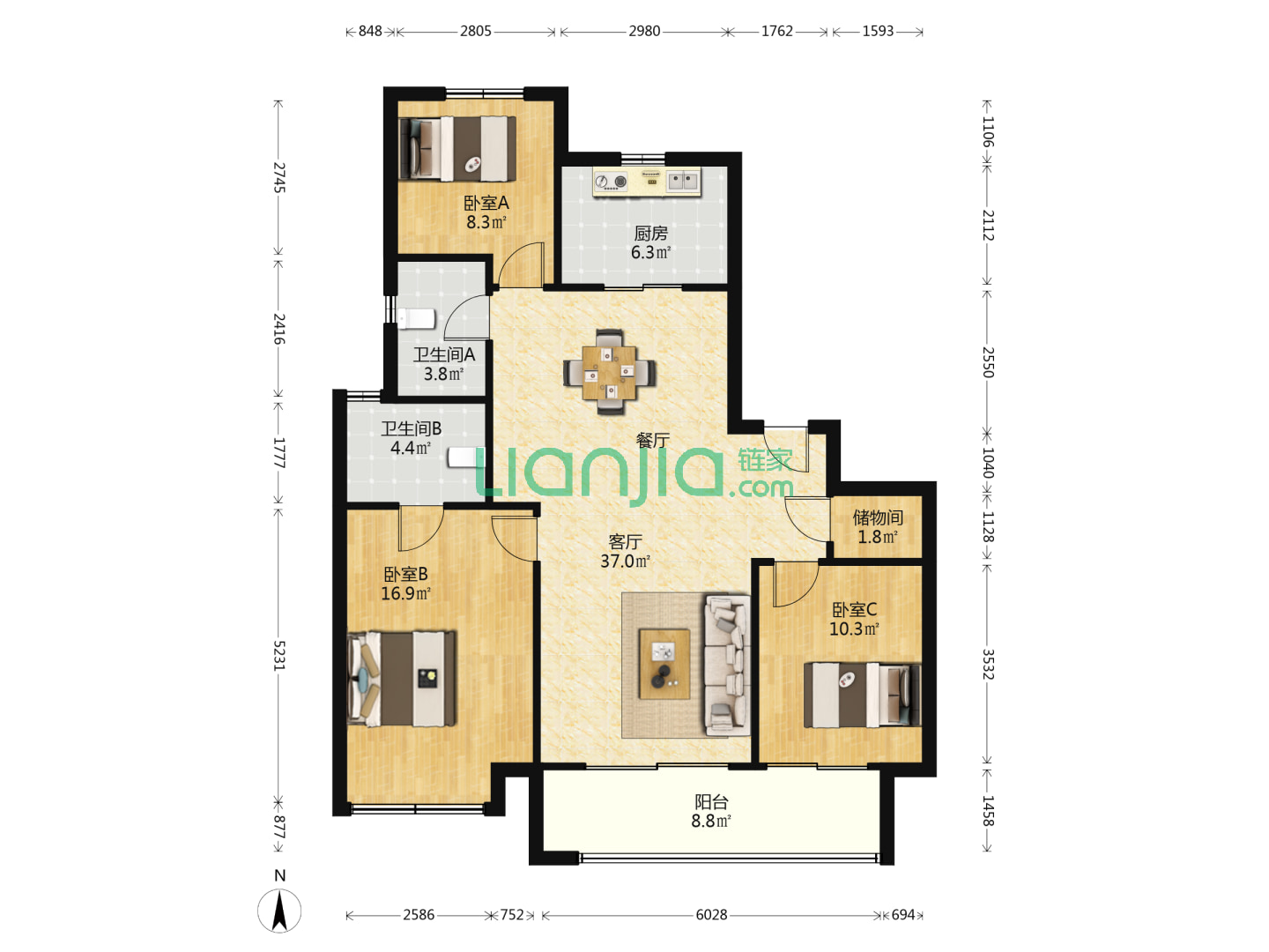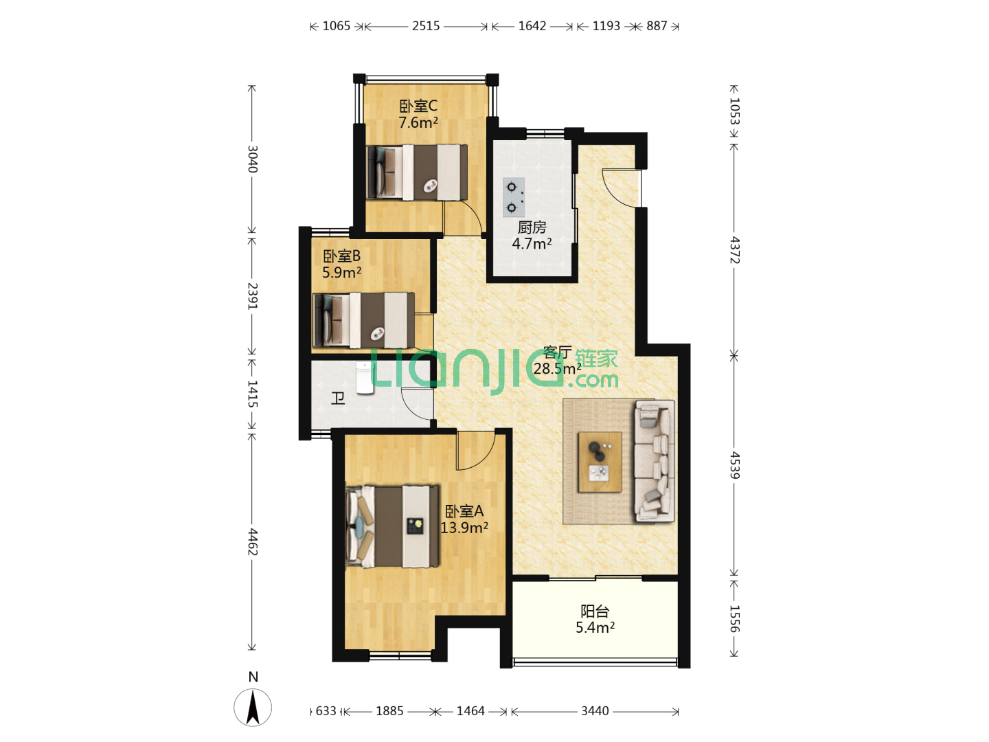 3室2厅2卫 135㎡