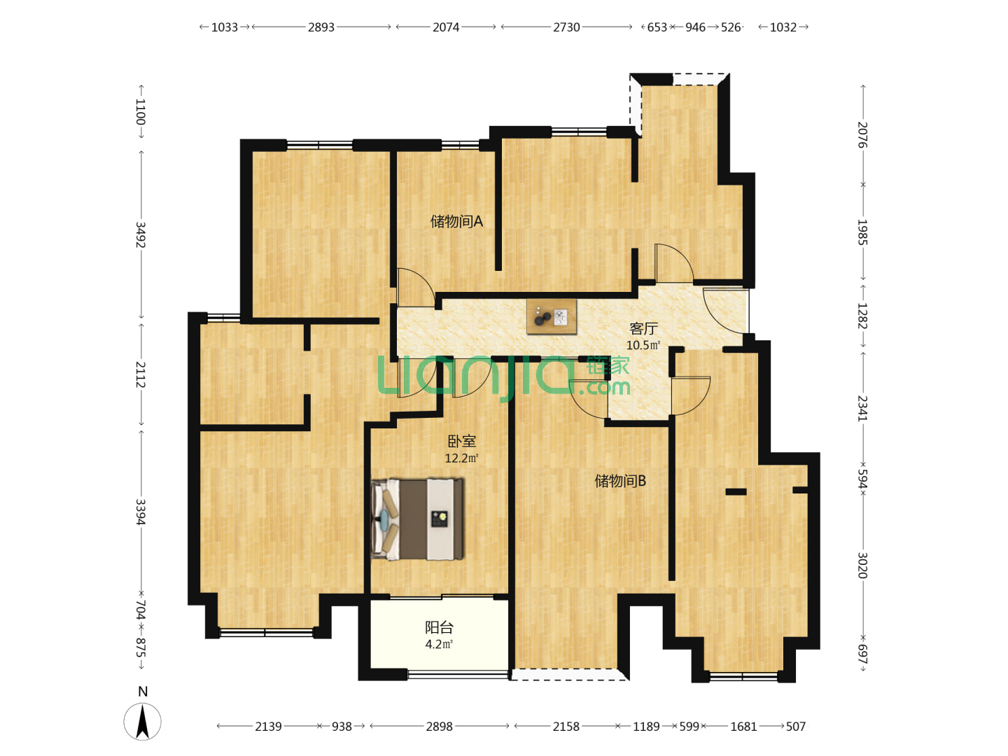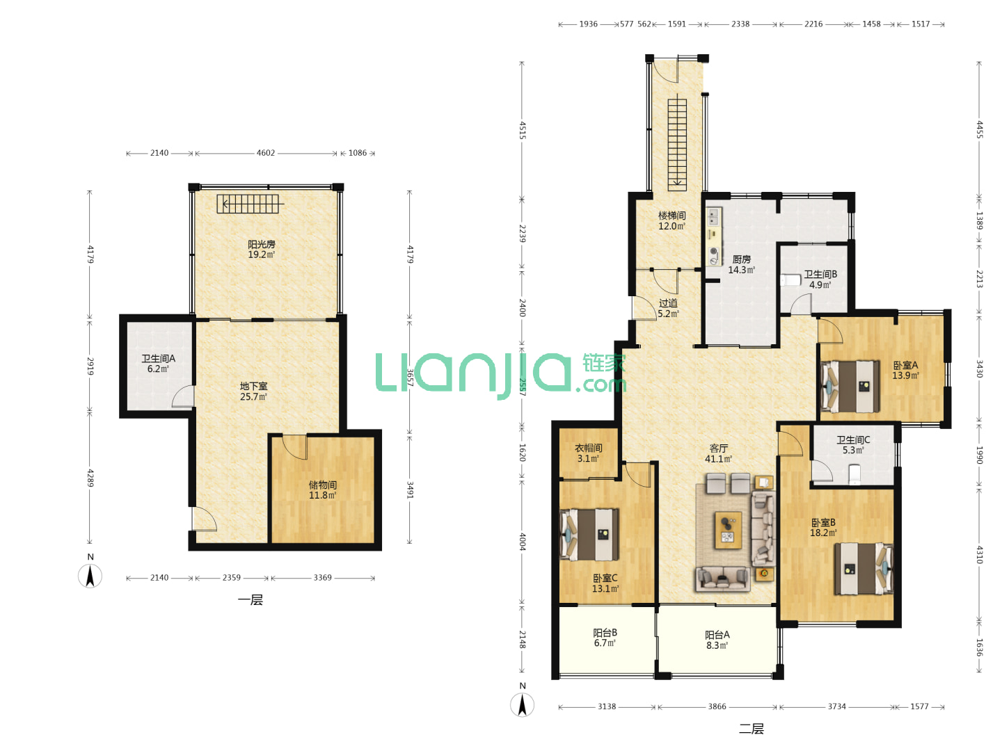 2室2厅2卫 91㎡